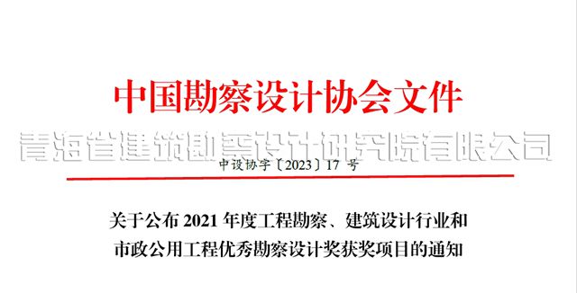 2021年12月,中國勘察設計協(xié)會組織開展“全國工程勘察設計行業(yè)優(yōu)秀工程勘察設計行業(yè)獎”評選工作,公司高度重視申報工作,積極遴選項目,編制申報材料,經(jīng)過行業(yè)專家多輪評審,最終憑借過硬的設計技術、社會及經(jīng)濟效益收獲1個三等獎。